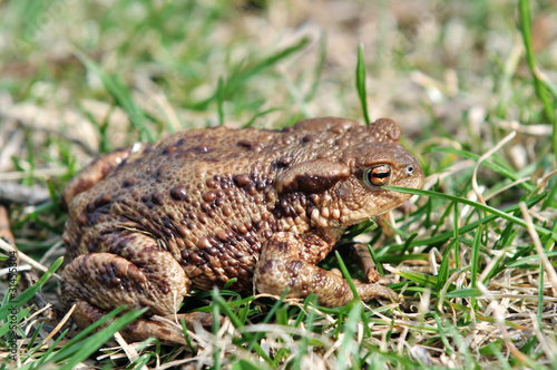 © Kheki, Fototapeta premium Brown frog in the grass - side view