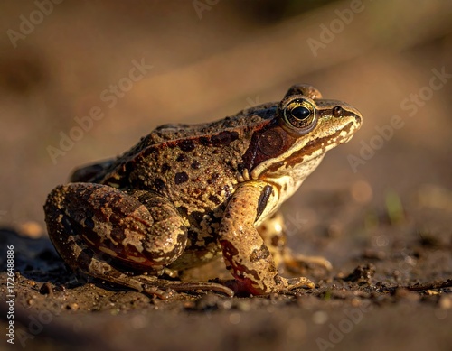 © Muh, Fototapeta premium Brown Frog on Damp Ground in Soft Sunlight