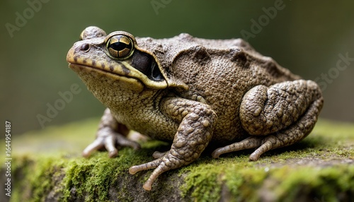© Marina, Fototapeta premium Brown frog sitting on mossy stone in natural environment