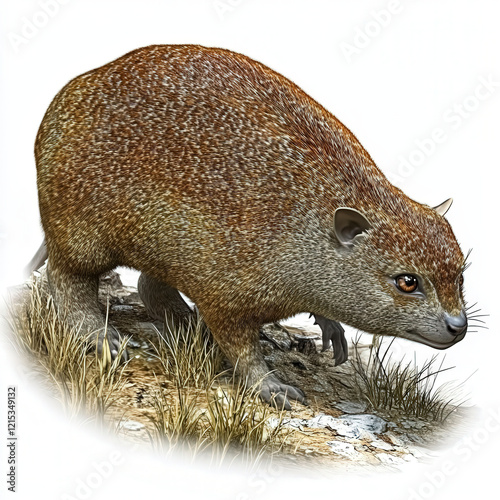 © kullapassorn, Obraz premium Brown, furry rodent, sharp claws, alert expression, grassy ground.