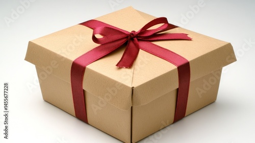 © BABEKU, Fototapeta premium Brown gift box with red ribbon