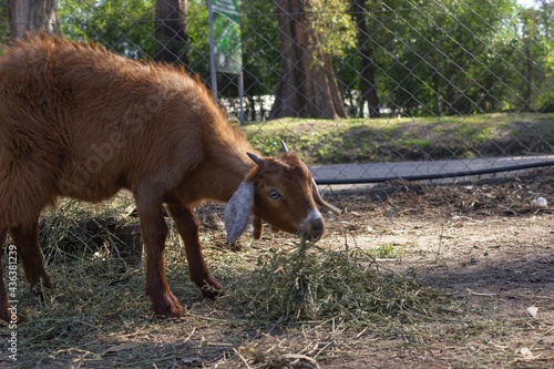 © fabianalejandro, Fototapeta premium Brown goat eating in the farm.