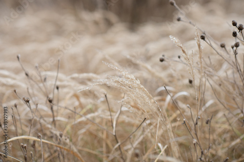 © Наталия Бражник, Fototapeta premium brown grass in a field after a freezing rain in late autumn