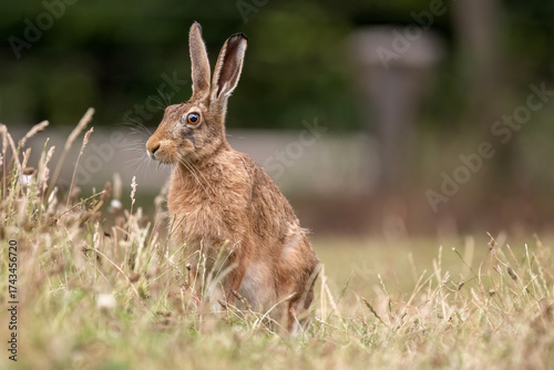 Fototapeta premium Brown hare, Lepus europaeus, on the grass in the uk in the summer