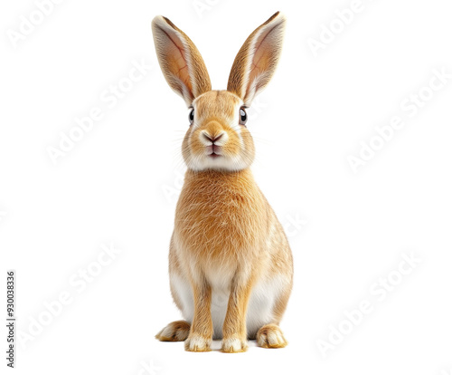 © Asier, Obraz premium Brown hare standing upright isolated on white. PNG transparent.