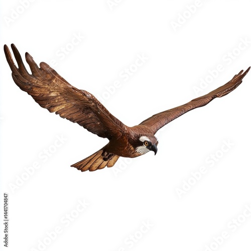 © Yothin, Obraz premium Brown Hawk in Flight Against White Background