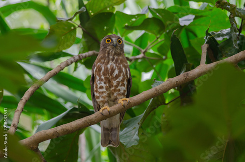 © forest71, Fototapeta premium Brown Hawk Owl perch on the tree in nature