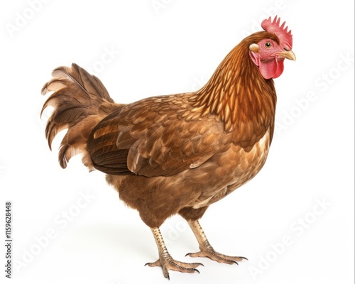 © Maryna, Fototapeta premium Brown Hen in Isolation. Full Body of Farm Animal Chicken Stands on White Background with Clear Detail