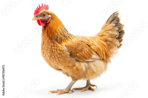 © thanakrit, Fototapeta premium Brown hen isolated on white background.