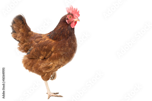 Fototapeta premium brown hen on white,copy space