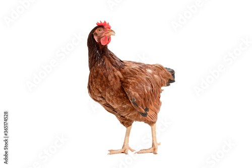 Fototapeta premium brown hen walking isolated on white, studio shot,chicken.