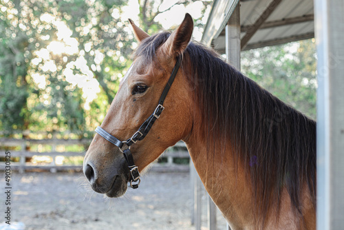 Naklejka premium Brown hoarse in a stall in Kissimmee Florida near Orlando