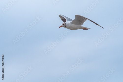 Obraz premium Brown-hooded Gull (Chroicocephalus maculipennis) by the bay, Montevideo, Uruguay