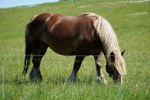 © PX Media, Obraz premium Brown horse eating grass on a pasture