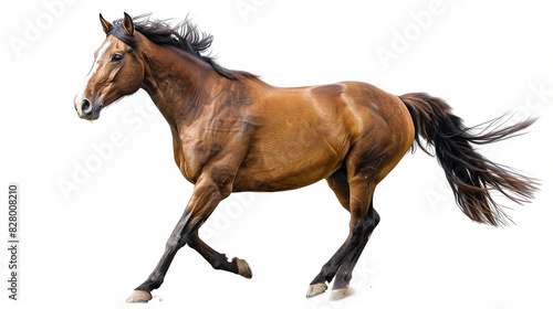 © Ala, Fototapeta premium Brown Horse Galloping on White Background