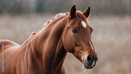 © AbstractAI, Obraz premium Brown Horse Head Profile Against Natural Background With Space For Text Overlay