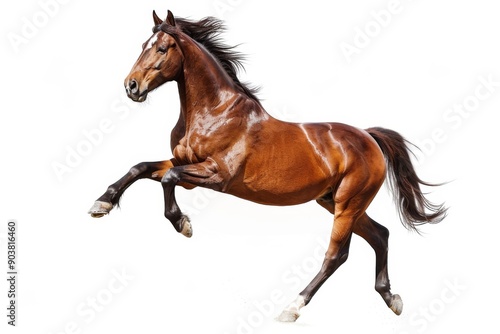 © Yeivaz, Obraz premium Brown horse in rearing pose, standing up on hind legs isolated on white background