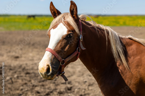 © Marina, Fototapeta premium Brown Horse On Pasture