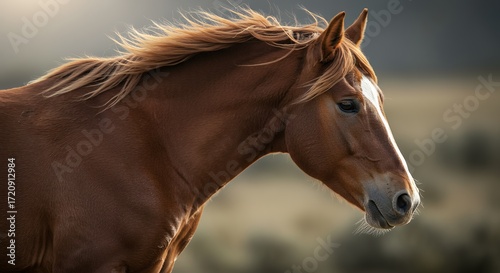 © AGUS, Fototapeta premium Brown horse profile outdoors