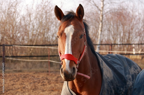 Naklejka premium Brown horses on a paddock