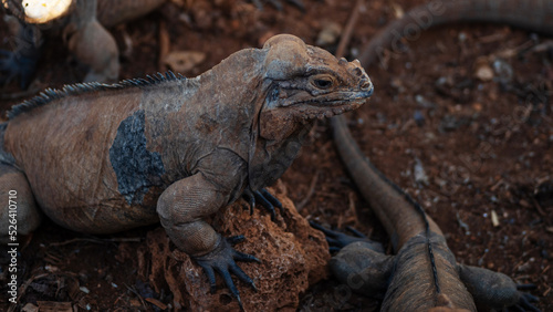 © Ulia Koltyrina, Obraz premium Brown iguanas in the wild, nature park. Lizard colony, close-up