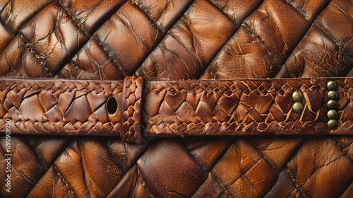 © Emin, Obraz premium Brown leather background with braided belt and metal rivet cowhide texture copy space