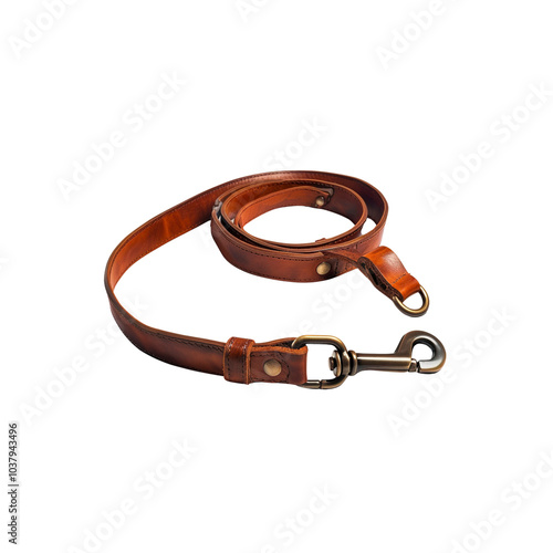 Obraz premium Brown Leather Dog Leash with Brass Hardware