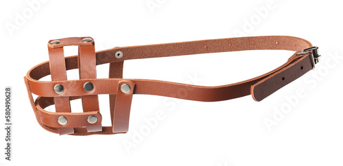 © New Africa, Fototapeta premium Brown leather dog muzzle isolated on white