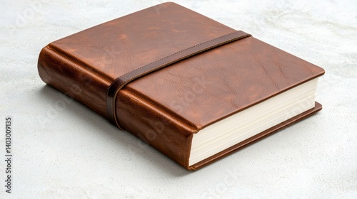 © Bounpaseuth, Obraz premium Brown Leather Journal on Gray Surface