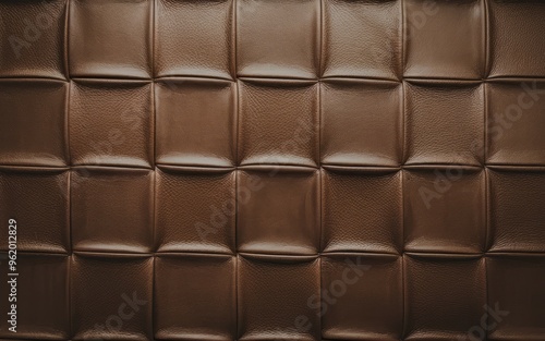 © Lull, Naklejka premium Brown leather texture. Close-up shot of a brown leather texture with a quilted pattern, ideal for backgrounds and design projects.