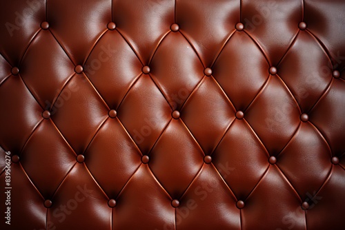 Fototapeta premium Brown Leather Upholstery With Diamond Stitching and Buttons