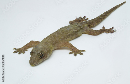 Naklejka premium Brown lizard on a white background, Southeast Asian lizard.