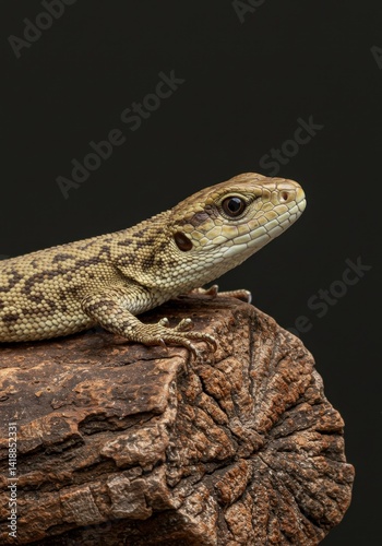 © AleniaFlow, Naklejka premium Brown Lizard on Dark Wood Log