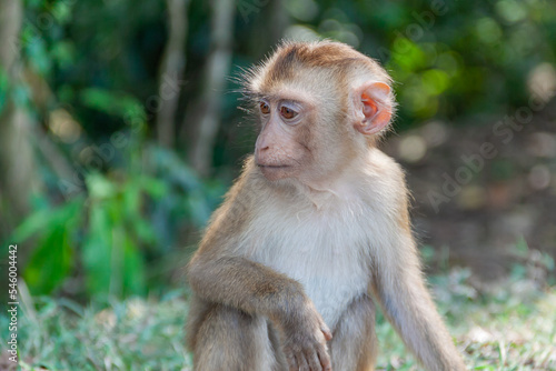 Fototapeta premium Brown Macaques monkey sitting on the ground