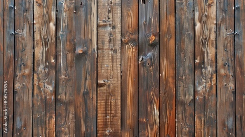 © TheWaterMeloonProjec, Naklejka premium Brown painted vertical wooden boards in antiquated style
