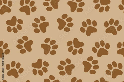 Obraz premium Brown Paw Prints on Beige Background Seamless Vector Pattern