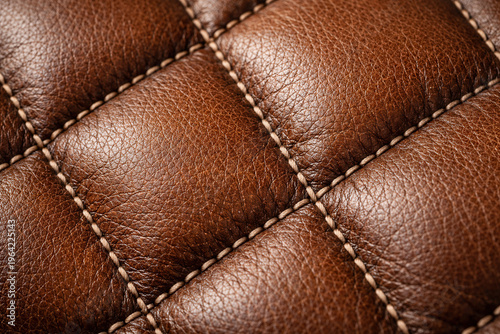 Fototapeta premium Brown Quilted Leather Texture With Decorative Stitching