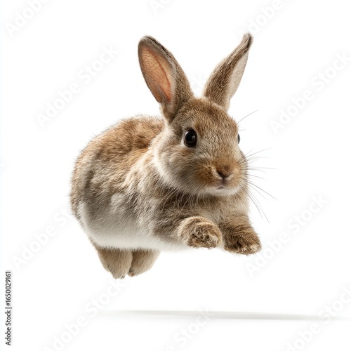 © pena, Obraz premium Brown rabbit in mid-air jump, white background