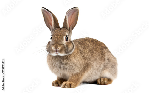 Obraz premium Brown rabbit sitting elegantly on a white floor