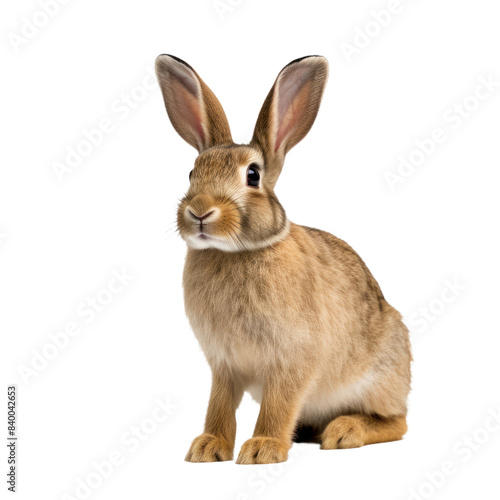Fototapeta premium Brown Rabbit Sitting On Isolated Background. Cute Brown Bunny With Alert Ears...