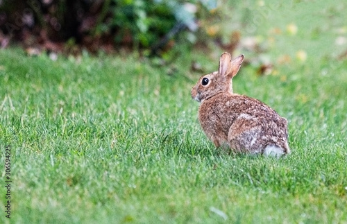 © coachwood, Fototapeta premium Brown rabbitt sitting in grass on front lawn