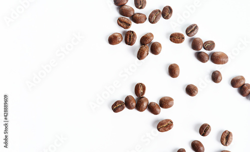 © PINKASEVICH, Naklejka premium Brown roast, Dark aromatic roasts beans coffee on white background with copyspace.