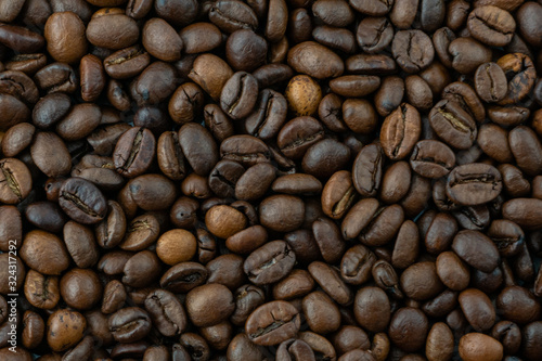 © Anna, Naklejka premium brown roasted coffee beans in the whole photo background