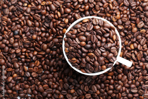 © 5second, Fototapeta premium Brown roasted coffee beans in white cup