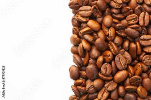 Fototapeta premium Brown roasted coffee beans seed on white background