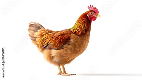 © Tilak, Fototapeta premium Brown Rooster Standing Isolated on White Background
