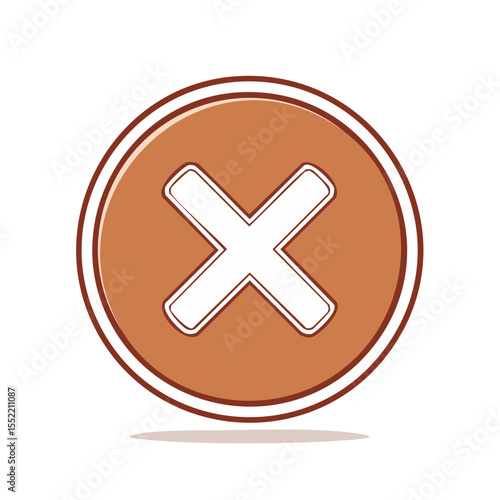 Obraz premium Brown round button with white cross icon indicating a deletion error or close...