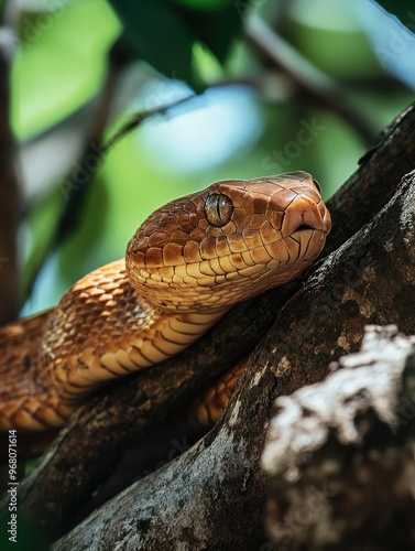 © Giovanni, Fototapeta premium Brown snake resting on a tree branch