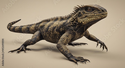 © arazka, Obraz premium Brown Spiny Lizard on Beige Surface