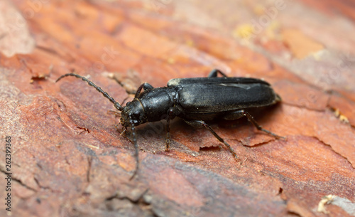 Obraz premium Brown spruce longhorn beetle, Tetropium fuscum on wood